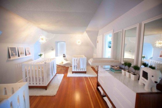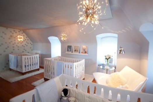 Any family’s life would change if they are having triplets. It would become much more chaotic and in order to make it at least a little bit easier you can create a very well organized nursery. Marsh & Clark Design studio created such room for the San Francisco 2010 Decorator Showcase. The room is located in the attic space of a 1930’s French Normandy-style mansion, and could inspire any modern parents who wants a beautiful and peaceful place for their kids but aren’t into the deluge of duckies. The designers highlighted the main things to consider while designing the nursery: safety, sustainability, washability, storage, flexibility and decor. All these things are considered in the triplets nursery design on pictures below. All materials and furniture there are chosen accordingly these “MUSTS” of the nursery design.